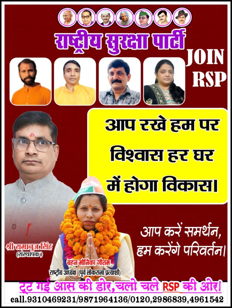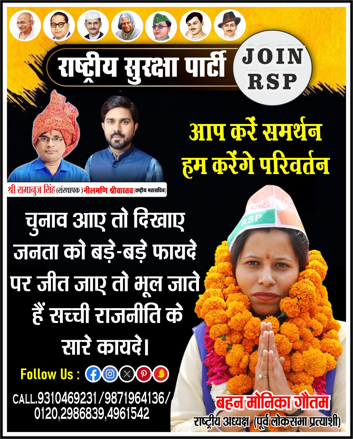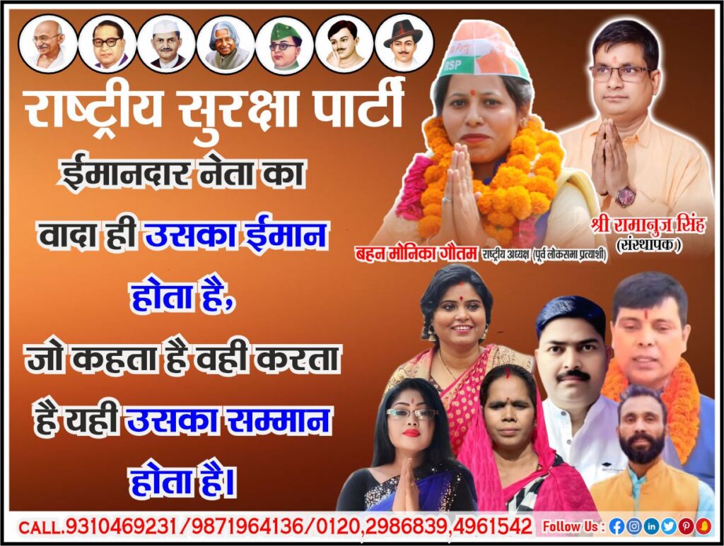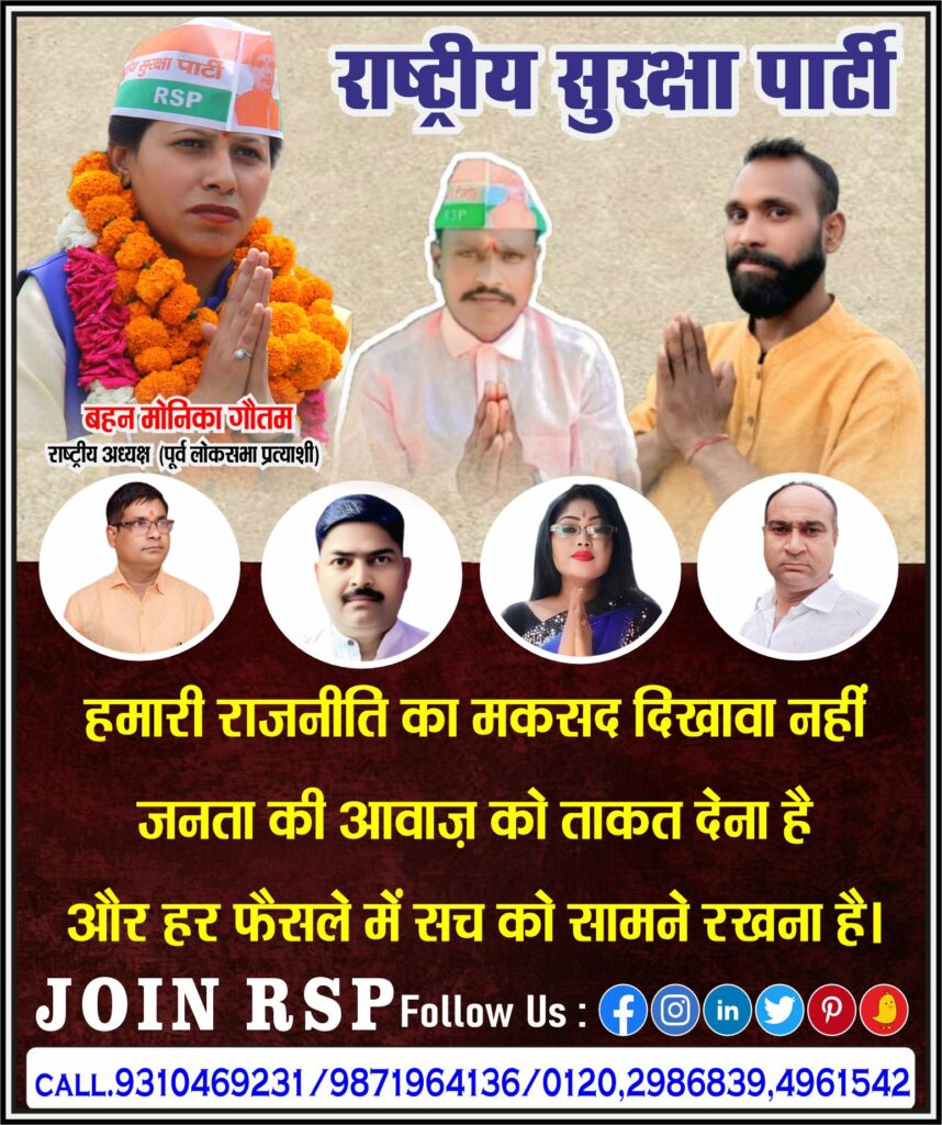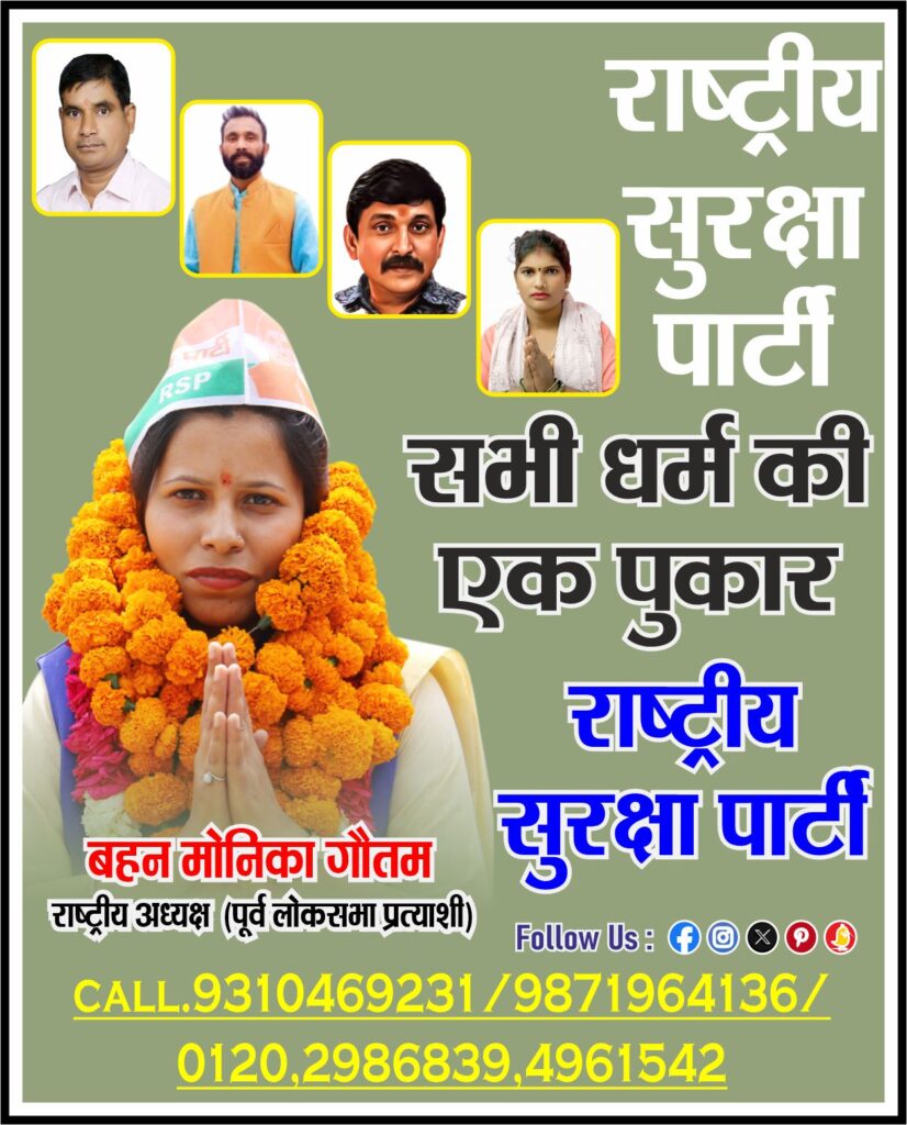 राष्ट्रीय सुरक्षा पार्टी से लोकसभा प्रत्याशी बहन मोनिका गौतम जी, लोकसभा चुनाव (जिला गाजियाबाद) नामांकन प्रक्रिया से पहले पार्टी के वरिष्ठ कार्यकर्ताओं का आशीर्वाद लेते हुए। - 01 अप्रैल 2024