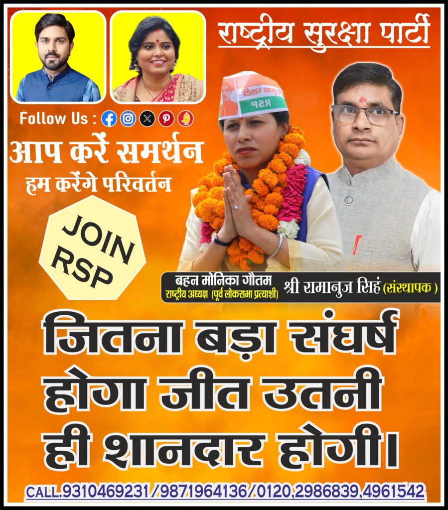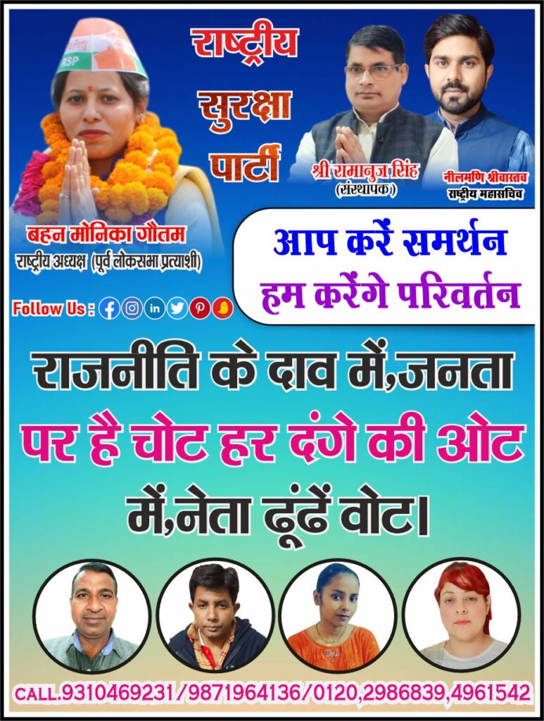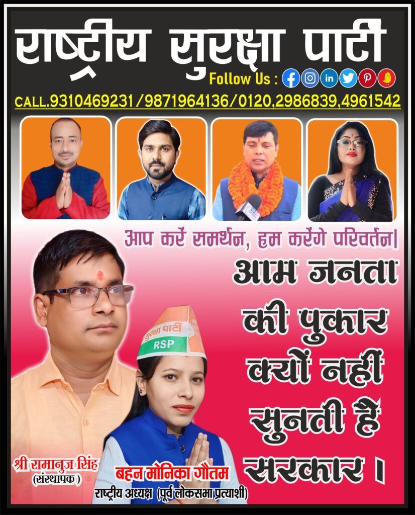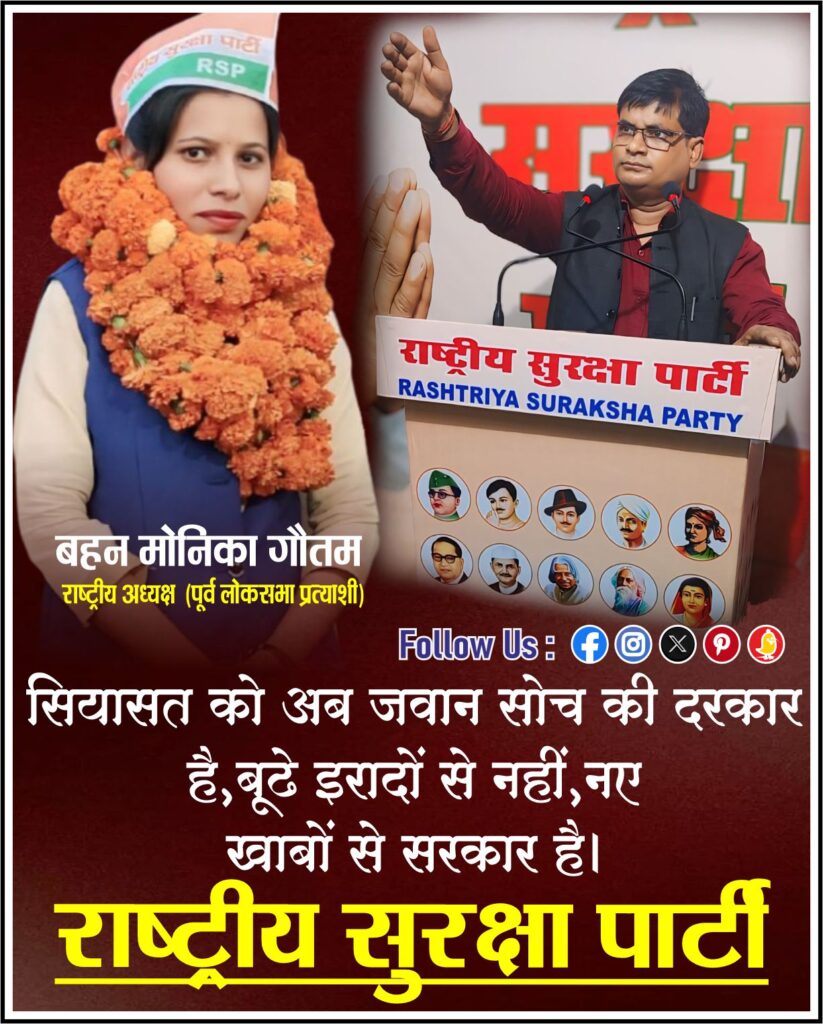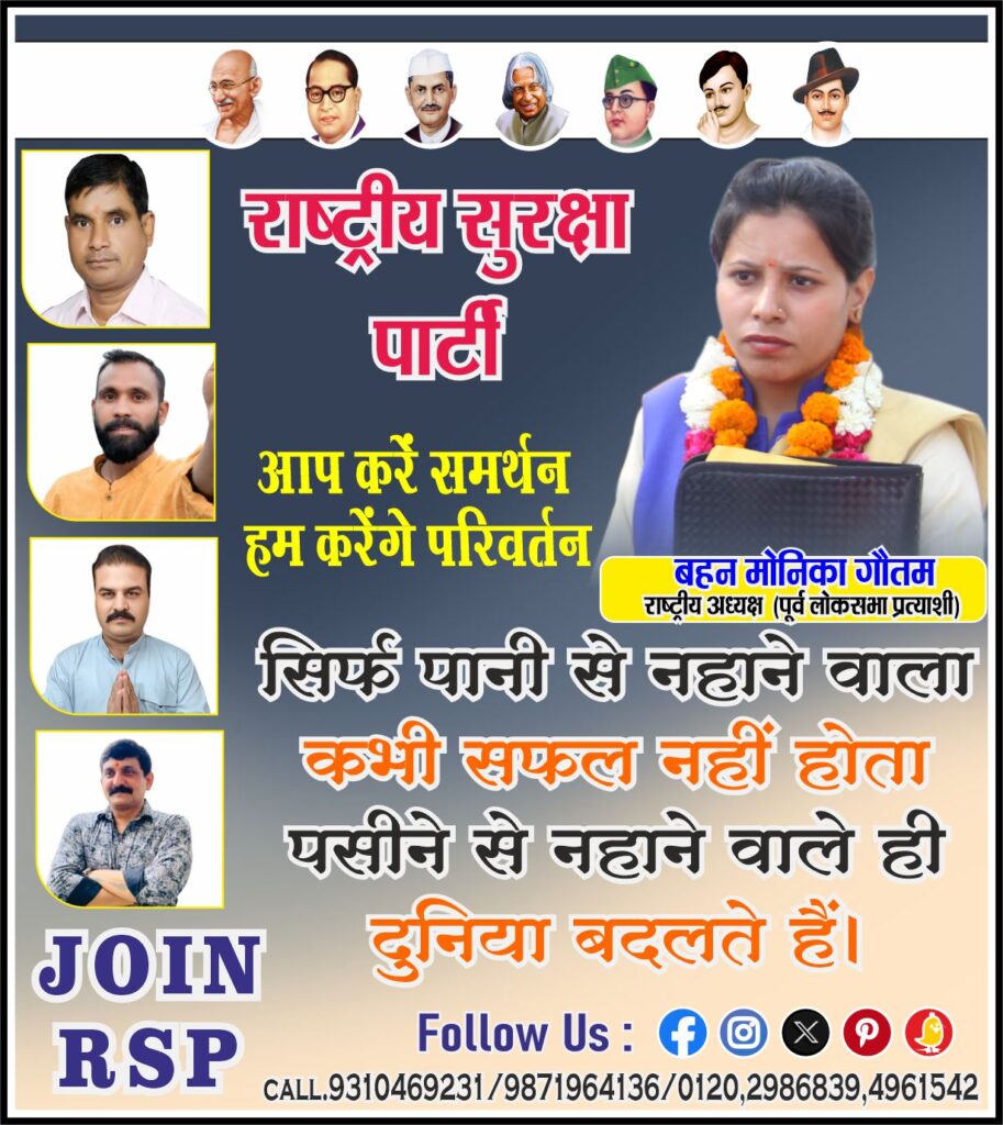 राष्ट्रीय सुरक्षा पार्टी से लोकसभा प्रत्याशी बहन मोनिका गौतम जी, लोकसभा चुनाव (जिला गाजियाबाद) नामांकन प्रक्रिया से पहले पार्टी के वरिष्ठ कार्यकर्ताओं का आशीर्वाद लेते हुए। - 01 अप्रैल 2024
